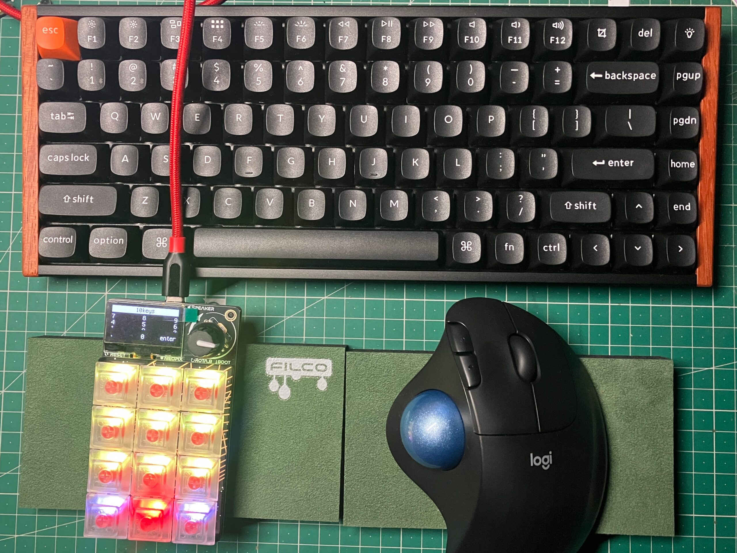 最近ミスタイプが増えてきて地味にストレス。もう一度タイピングを練習しようとこのキーボードを購入。やはりメカニカルキーボードはいいですね。打ち間違いもかなり減ります。キーはUS配列です。やはりかなが印字されていないのがうれしい。かなを打たないのに、印字されてるってほんとに無駄ですし、美しくないですよね。漢字‐英数切り替えの問題もkeychron launcherでendキーを切り替えに使っています。